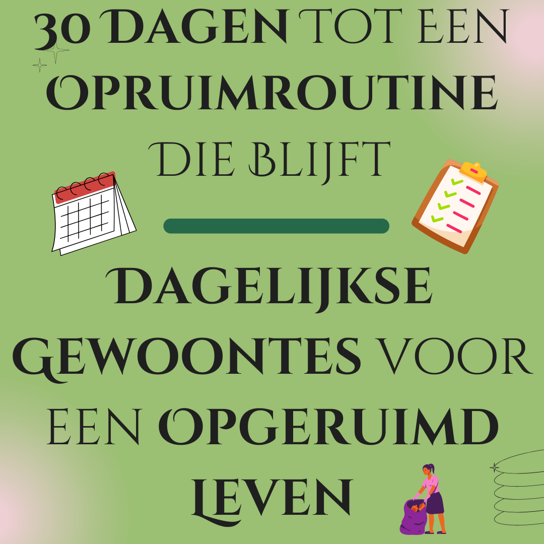 Volg een gestructureerde cursus van 30 dagen die drukke moeders en hardwerkende vrouwen helpt om hun huis georganiseerd te houden. Ontwikkel duurzame opruimroutines zonder overweldiging.